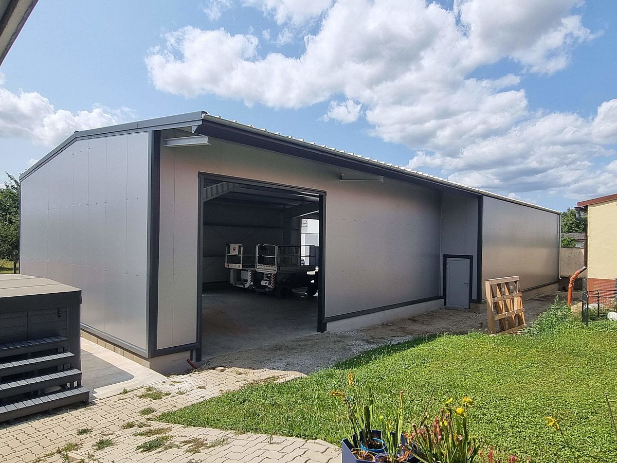 Dokončenie výstavby novej skladovej haly v Rakúsku – Gols [2025-11-03] V auguste 2025 sme úspešne dokončili výstavbu novej skladovej haly v rakúskom meste Gols. Hala je určená na uskladnenie poľnohospodárskej techniky a bola navrhnutá tak, aby spĺňala všetky požiadavky investora na funkčnosť, odolnosť a úspornú prevádzku. Objekt je kompletne izolovaný a vybudovaný z moderných sendvičových panelov, ktoré zabezpečujú výborné tepelnoizolačné vlastnosti a dlhú životnosť. Vďaka tomu bude možné techniku bezpečne skladovať počas celého roka bez ohľadu na poveternostné podmienky. Investor sa rozhodol pre výstavbu vlastnej haly ako dlhodobo výhodnejšie riešenie oproti prenájmu skladovacích priestorov. Zároveň sa investor rozhodol pre montáž vlastných brán, ktoré boli do objektu integrované v záverečnej fáze stavby. Výsledkom je moderné a funkčné skladové zázemie presne podľa jeho predstáv, ktoré zároveň prináša výraznú úsporu prevádzkových nákladov. Teší nás, že sme mohli byť súčasťou tohto projektu a prispieť k rozvoju moderného poľnohospodárskeho zázemia v regióne. KONTAKTUJTE NÁS!