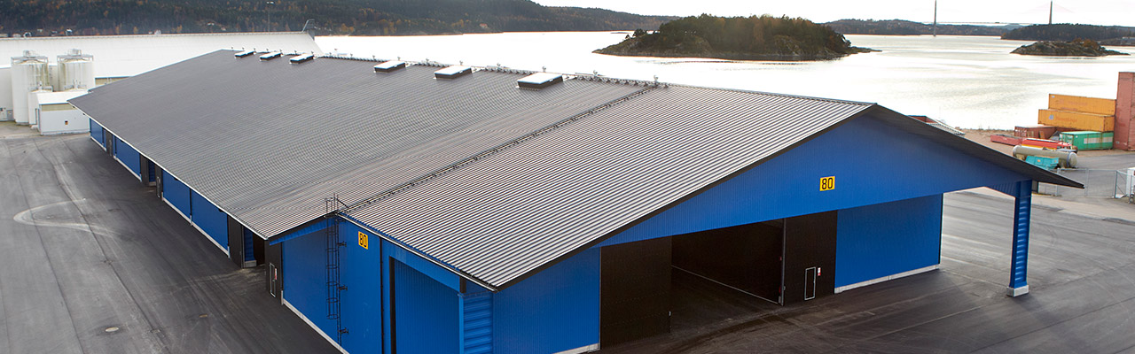 Nejnovějším přírůstkem k již dostupným 40 000 metrům čtverečním skladovacího prostoru v přístavu je hala, kterou dodala společnost Borga. Tato působivý sklad, který nabízí 6 000 metrů čtverečních zcela volného prostoru, se vyznačuje atraktivní modrou fasádou a dokonale plní svůj účel v souladu s požadavky zákazníka.
